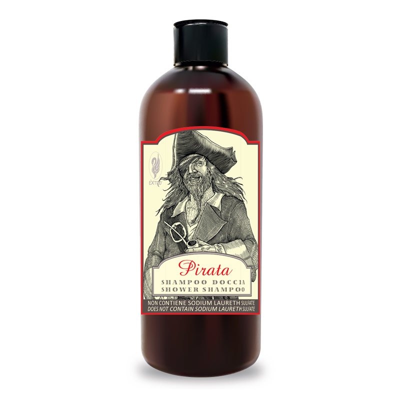 Shampoo Doccia Pirata di Extr, ricorda la fragranza da vecchia barberia, prodotta nel comodo formato da 500ml