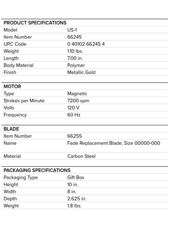 Una clipper dal design unico con un'esclusiva colorazione dorata del corpo macchina. Il bilanciamento perfetto unito ad una presa ergonomica, assicura la massima precisione nella realizzazione di finiture e sfumature.